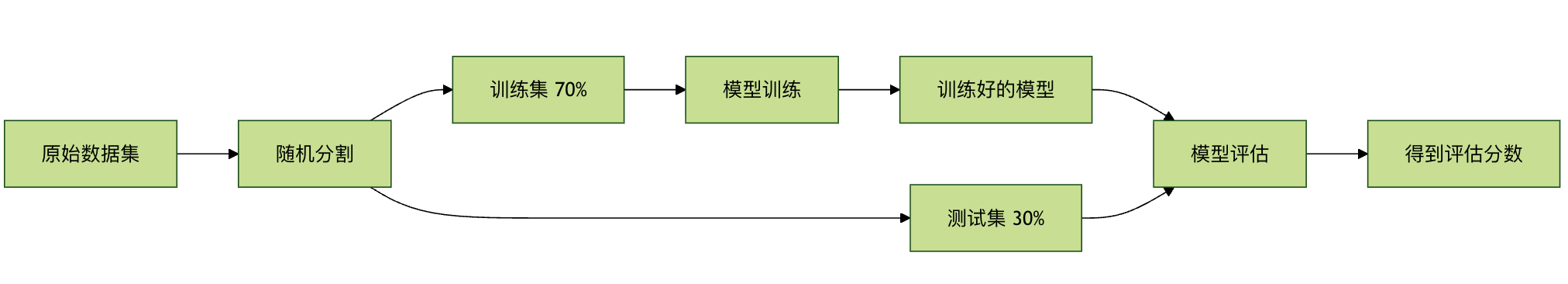 - 缺点: 评估结果高度依赖于单次随机划分。如果划分不幸运,评估结果可能不具有代表性。同时,由于测试集只使用了一次,数据利用不充分。